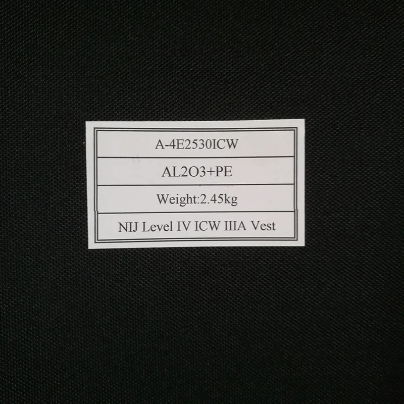 Type d’armure: armure Composite en céramique et PE en oxyde d’aluminium (alias al2o)