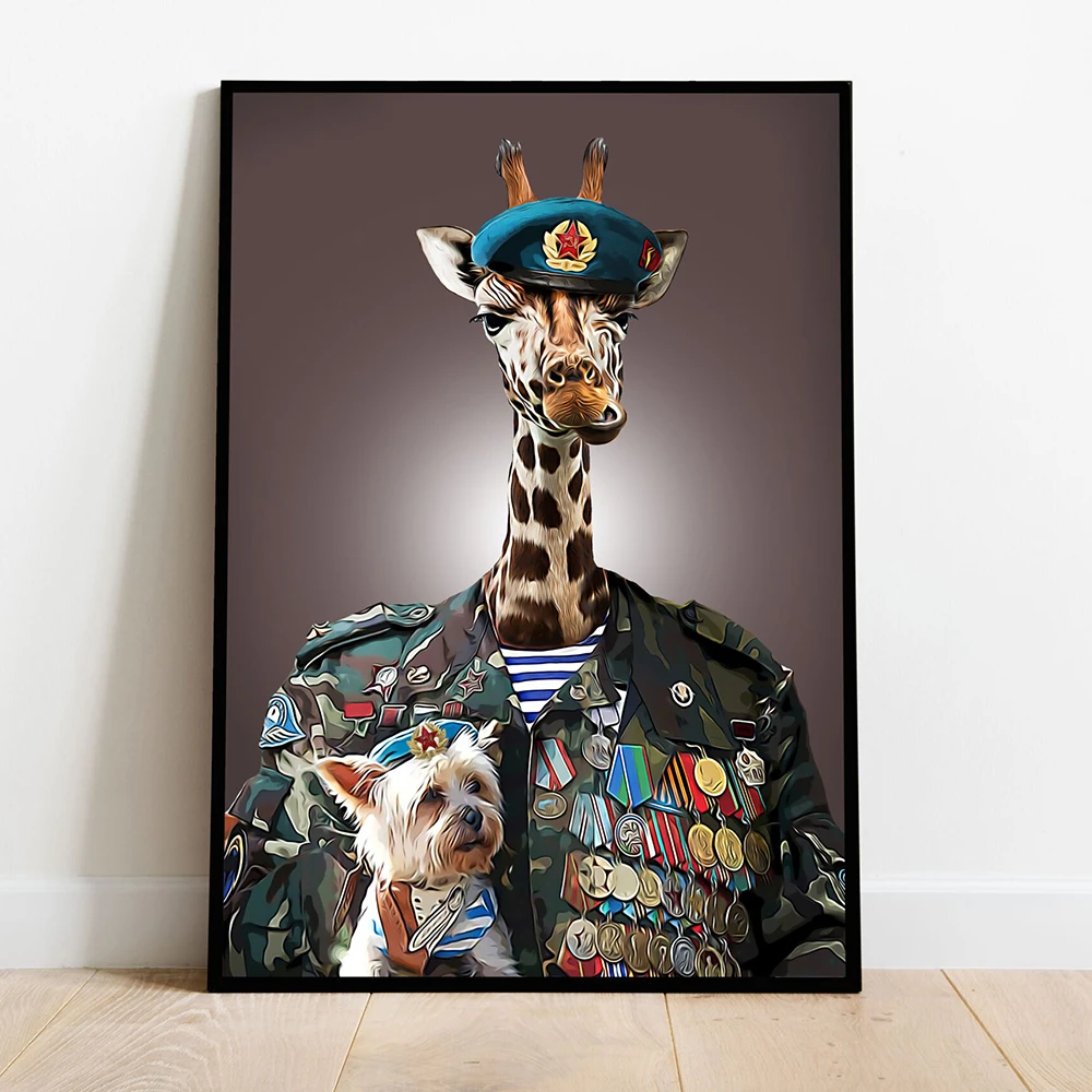 Affiche murale d’art militaire d’animaux drôles, impression sur toile, peinture murale, discuter, girafe, léopard, gérer pour décor de salon