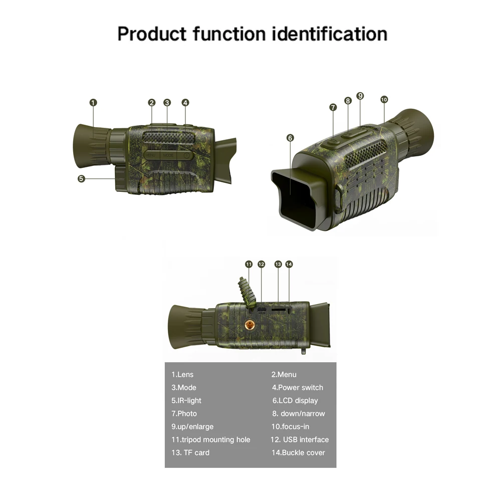 Cet appareil de vision nocturne portable peut être utilisé pour observer des objets dans l’obscurité et dans une situation de faible luminosité, adapté à une utilisation en extérieur. Avec un diamètre de lentille de 24mm et un grossissement 4X. Deux modes d’éclairage sont disponibles. La distance de visualisation dans l’environnement de faible luminosité sera de 3.0 mètres à l’infini, et la distance de visualisation de 250 à 300 mètres dans l’environnement sombre total. Convient pour les activités de plein air telles que l’observation de la navigation de plaisance, la chasse, l’observation des oiseaux, les voyages, la randonnée, le camping, l’observation des animaux. Aussi parfait pour les jeux sportifs, les concerts, l’opéra, etc.