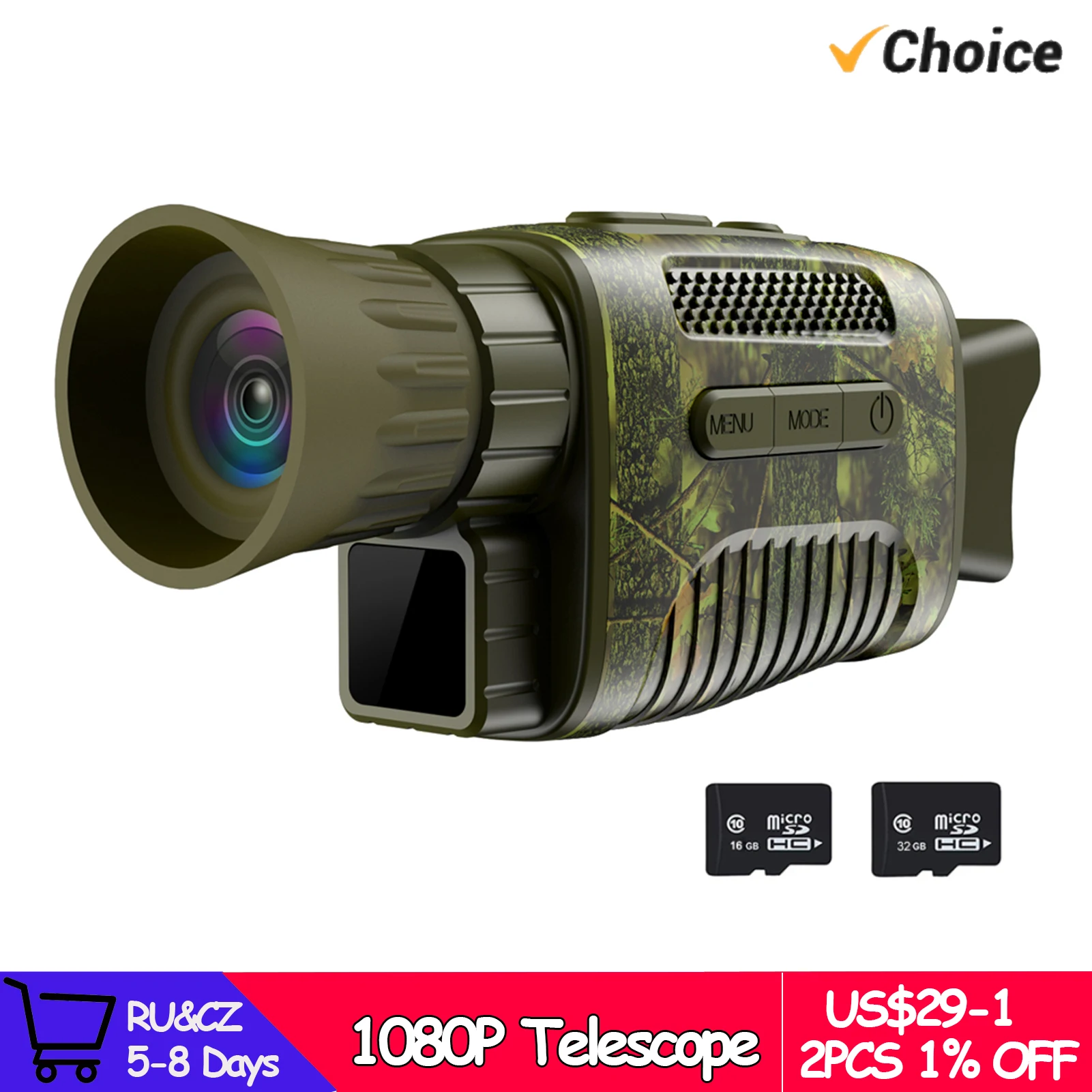 Type: dispositif de vision nocturne, dispositif de vision nocturne + carte mémoire 16G, vision nocturne + carte mémoire 32G (Facultatif)