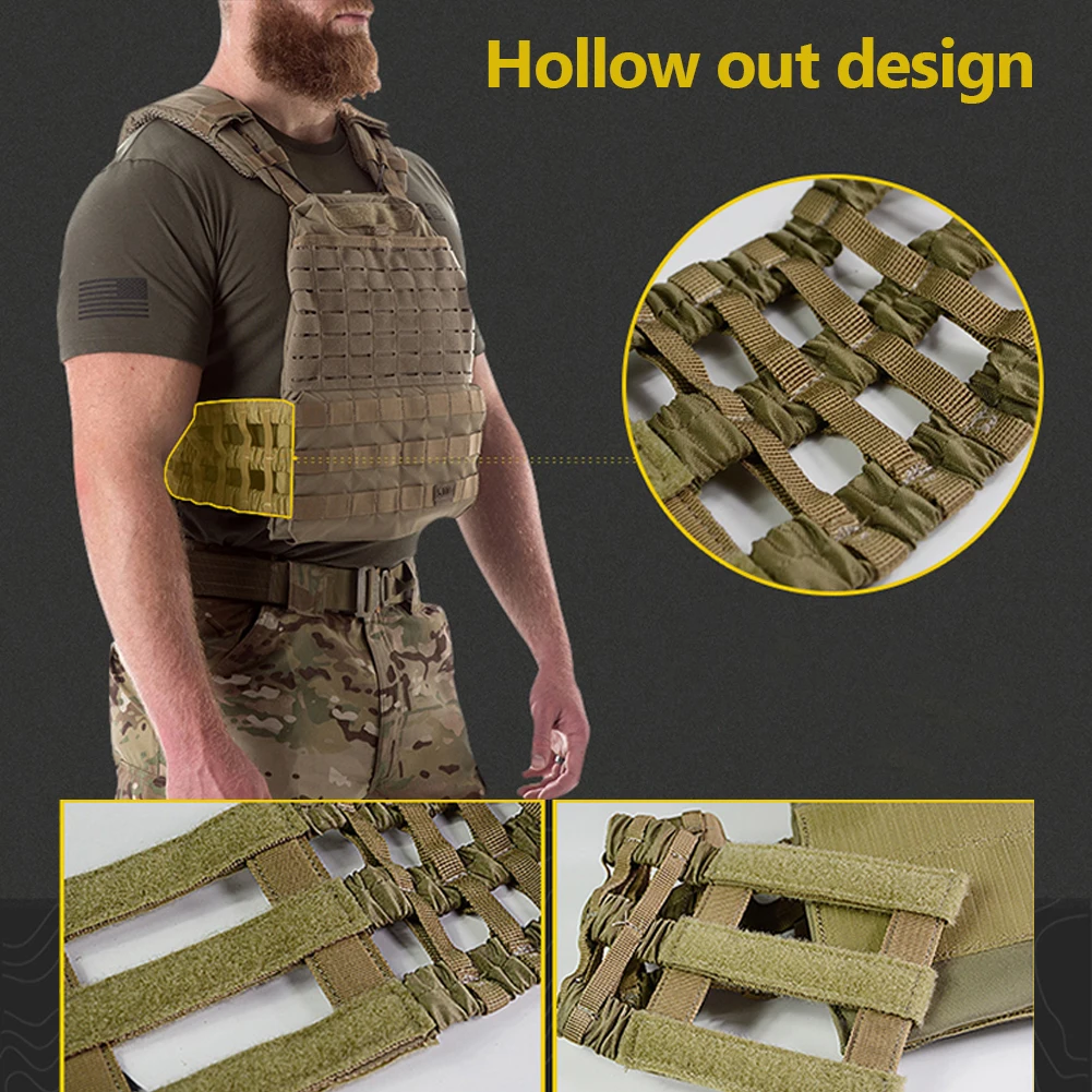 Le cĂŽtĂ© de la taille est Ă©vidĂ© pour rĂ©duire le poids du gilet, et est Ă©quipĂ© de bandes Ă©lastiques pour assurer la stabilitĂ© et le confort du gilet lorsque vous faites de l’exercice intense
