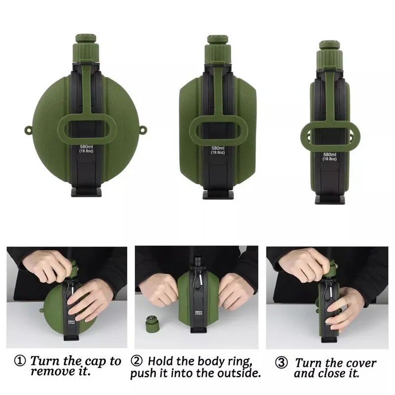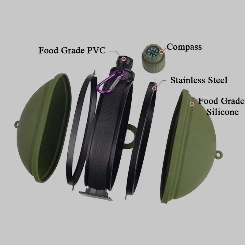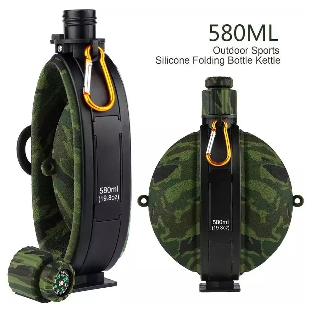 Bouteille d'Eau Militaire Pliable en Silicone, Bouilloire, Cantine avec Boussole, pour Voyage, Randonnée, Camping