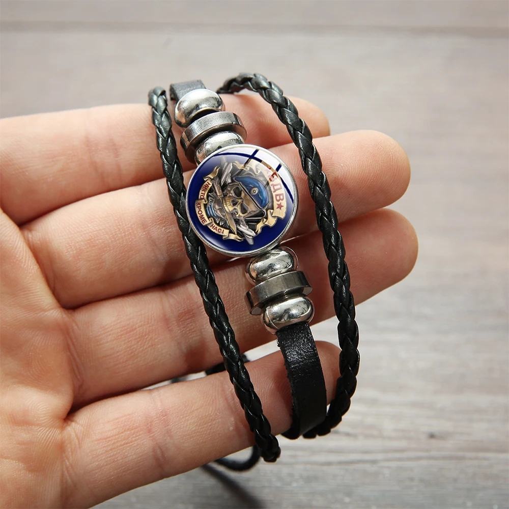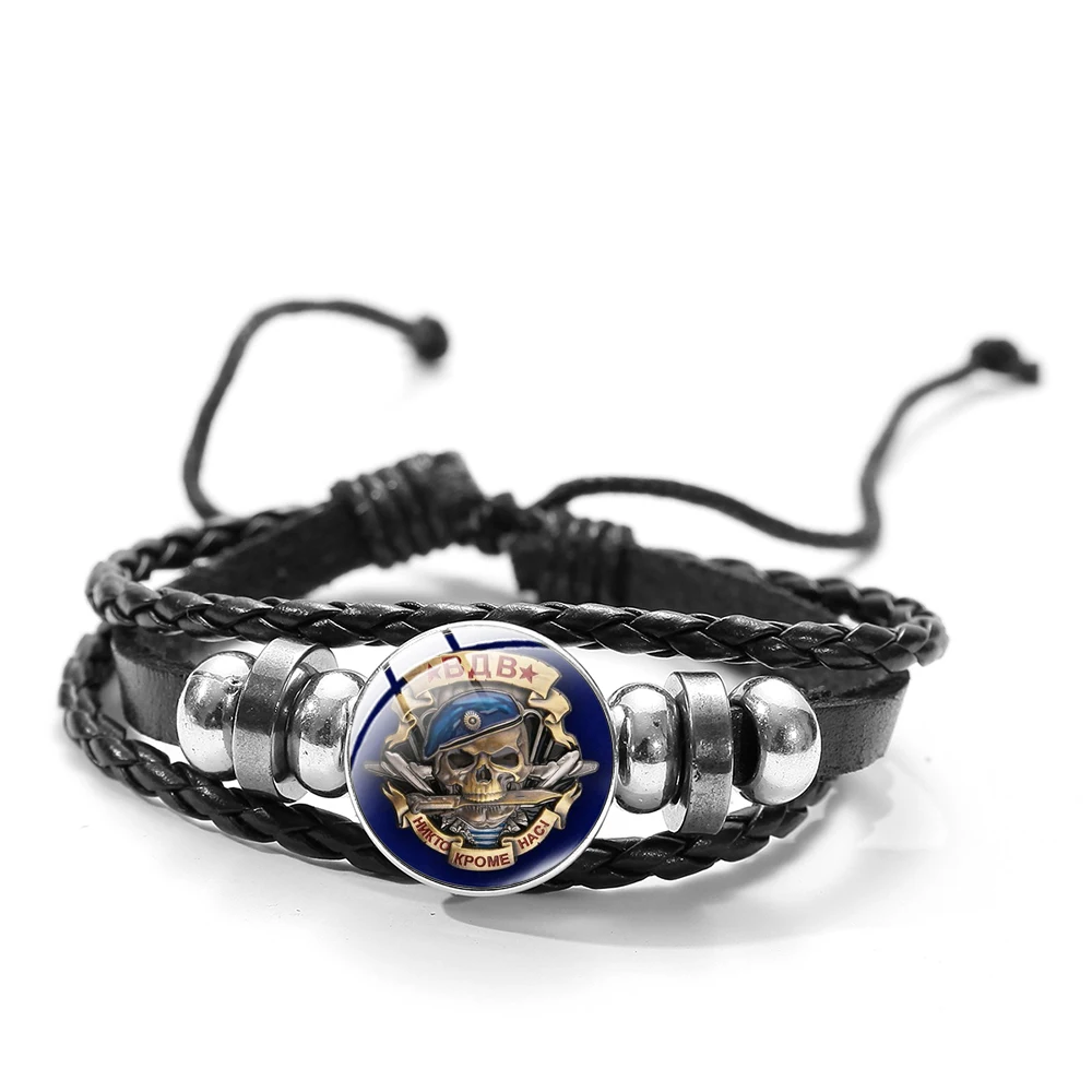 Bracelet classique en cuir tissé à la main, avec motif de Cabochon en verre, pour les troupes de l’armée de l’air soviétique russe VDV, cadeaux