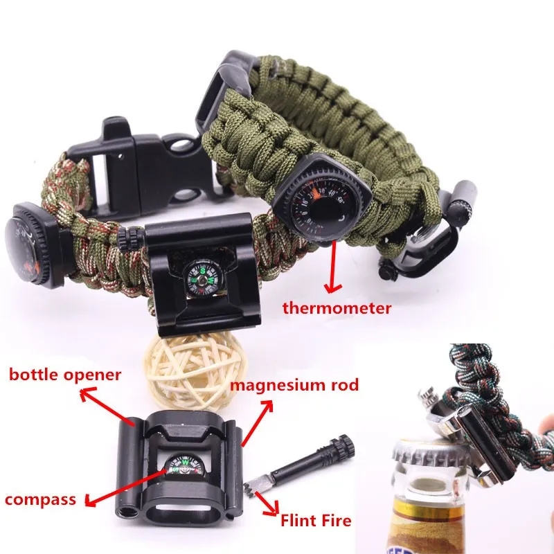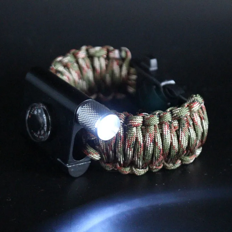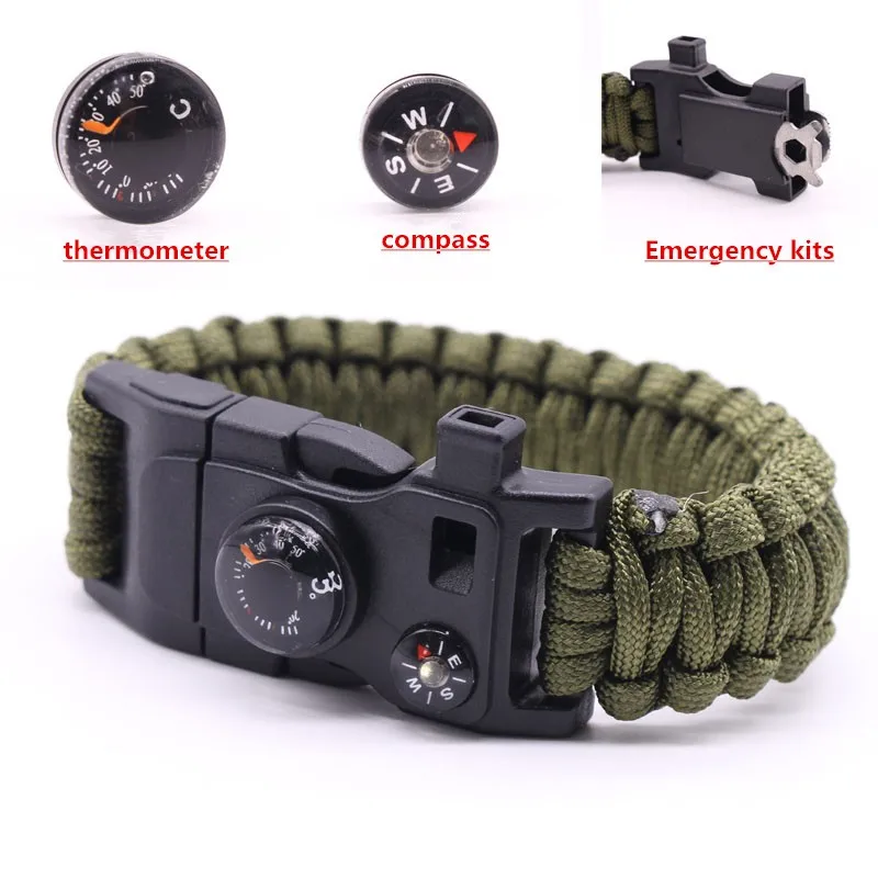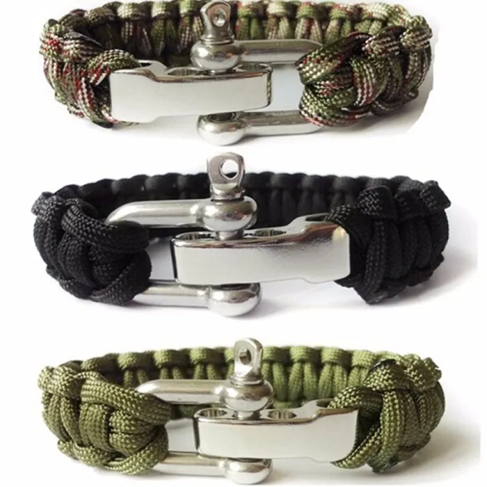Bracelet de survie en parachute tissĂ© pour homme, manille, broche, rĂ©glage de la structure, kit d’urgence, camping en plein air