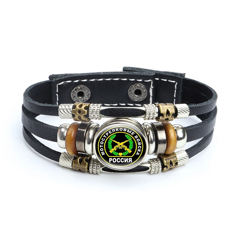 Bracelets en cuir tressé de l’armée russe, troupes de communication militaire, bracelets de perles multicouches, bijoux militaires russes