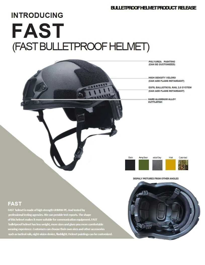 Il s’agit d’un tout nouveau casque balistique de classe IIIA UHMW-PE.