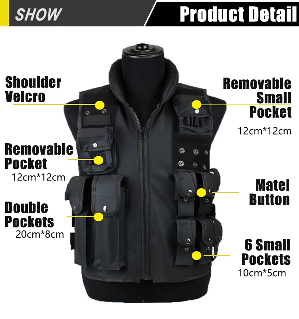 Liste de paquet: 1 x gilet de chasse, 1 x SWAT Velcro