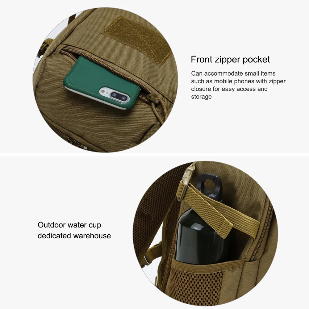 ![]() Sacs Ă dos militaires unisexes Sacs Ă dos d’assaut Ă©tanches Grande capacitĂ© Chasse PĂȘche Escalade CaractĂ©ristiques: 1. RĂ©sistant Ă l’eau et durable:Ce sac Ă dos d’extĂ©rieur est fabriquĂ© en tissu Oxford de haute qualitĂ©, offrant une excellente rĂ©sistance Ă l’eau et durabilitĂ©. Il peut rĂ©sister Ă diverses conditions mĂ©tĂ©orologiques et durer longtemps, assurant des performances fiables dans les aventures en plein air. Le design spacieux du compartiment principal vous permet de ranger et d’organiser facilement vos vĂȘtements, chaussures, livres, iPad et autres articles essentiels. Ce sac Ă dos offre amplement d’espace pour tous vos voyages, randonnĂ©es ou besoins quotidiens. SpĂ©cification: Origine: Chine continentale MatĂ©riel: Toile Sexe: Unisexe MatĂ©riau du produit: tissu Oxford Couleur du produit: noir, marron, camouflage ACU, numĂ©rique du dĂ©sert, vert armĂ©e, camouflage de la jungle Taille du produit: 37cm/14.57in x 23cm/9.06in x 10cm/3.94in Remarque: