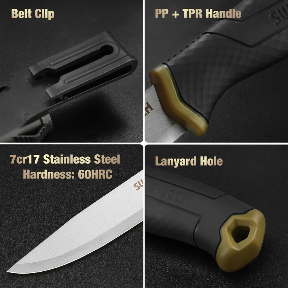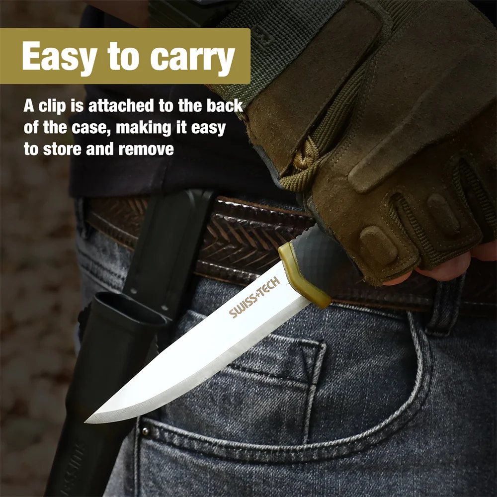 Suisse TECH couteau de survie à lame fixe avec couteau à gaine couteau de chasse militaire tactique solide à bord unique super