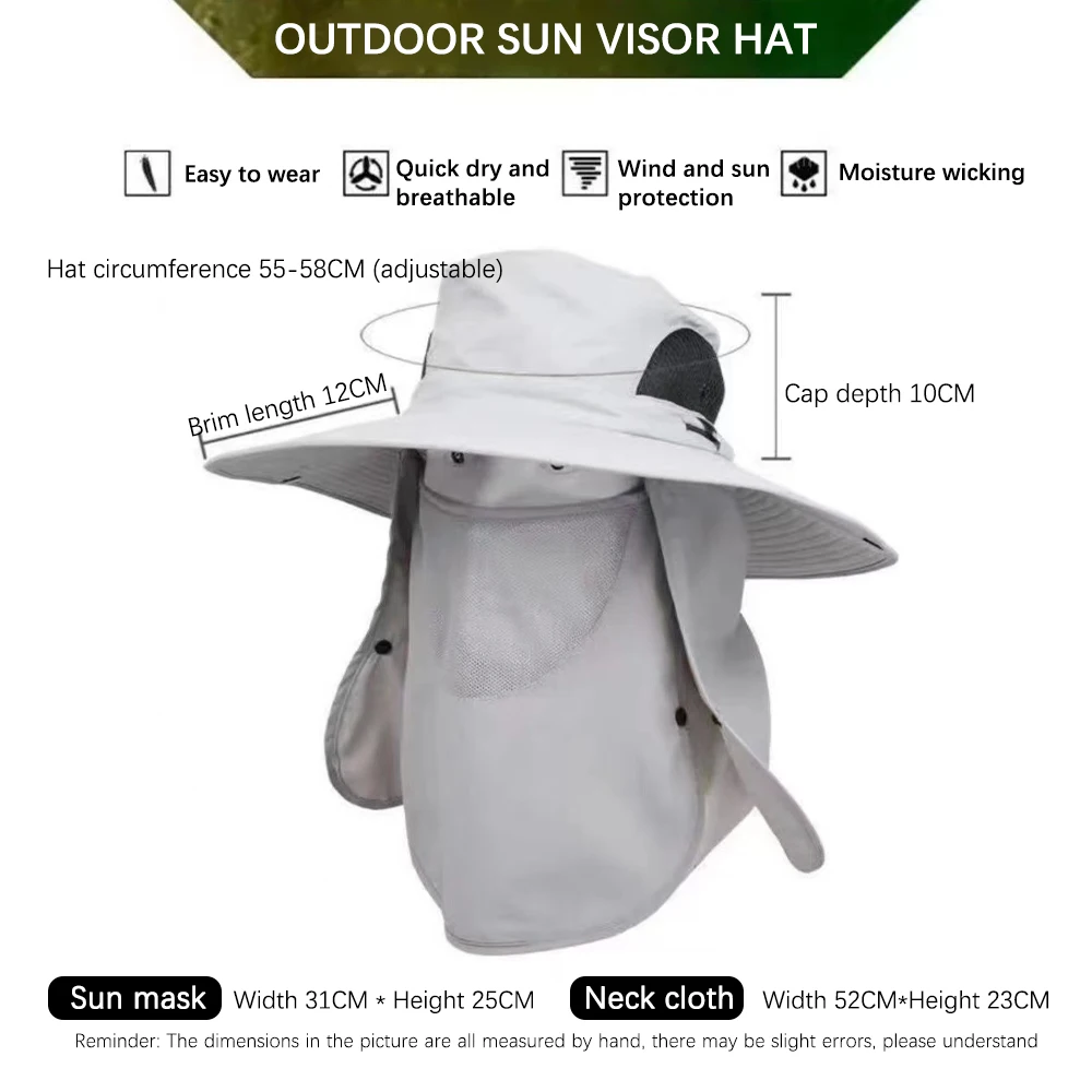 Summer Sun Hats UV Protection Outdoor Hunting Fishing Cap for Men Women Hiking Camping Visor Bucket Hat Removable Fisherman Hat