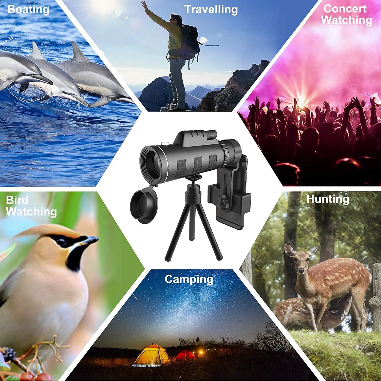Télescope de poche monoculaire professionnel avec trépied, jumelles injustes, voyage, vacances, cadeau, 40×60