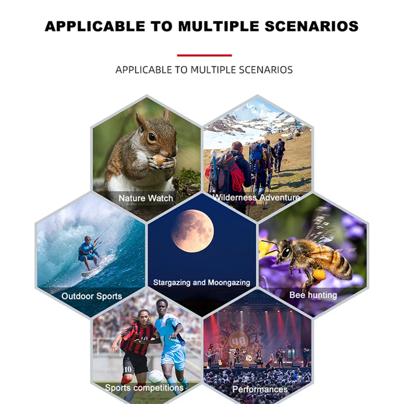 Observation de la nature, aventure en pleine nature, sports de plein air, observation des étoiles, chasse aux abeilles, compétition sportive, activités de performance, etc.