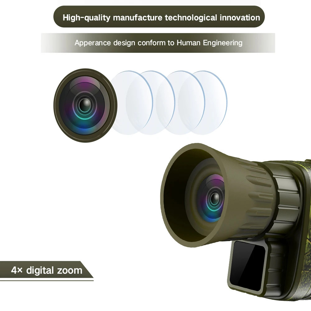 Télescopes monoculaires à n’aime numérique 1080P 4X, 7 recycleurs, dispositif de vision nocturne infrarouge, lunettes de jour, photo de nuit, prise de vue vidéo en plein air